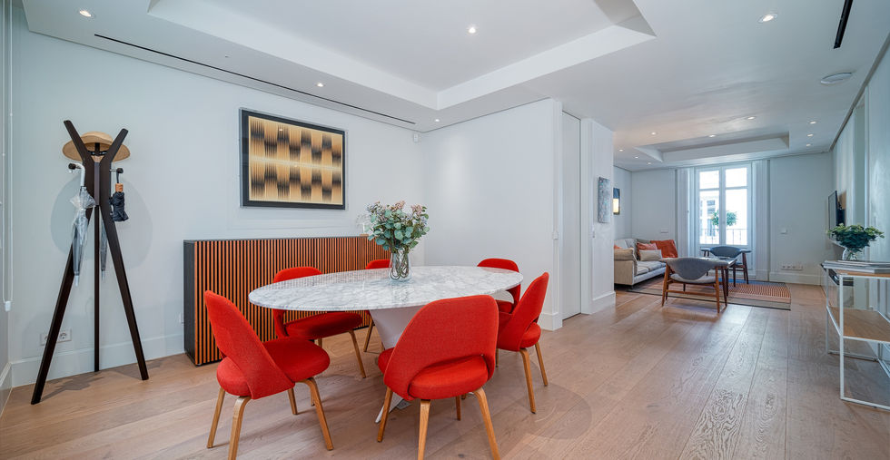 A tan sólo unos minutos del Paseo de Recoletos y la calle Serrano, junto a la Puerta de Alcalá y Parque del Retiro. Recoletos, una zona realmente prestigiosa dentro del barrio de Salamanca, es donde se encuentra este impresionante piso. Situado en un edificio totalmente rehabilitado en el año 2018, siendo originalmente del año 1.930, donde la elegancia de su diseño y calidades son su sello de identidad.