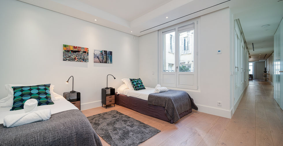 Los dormitorios son amplios y luminosos, conseguido gracias a sus amplias ventanas que permiten el paso de gran cantidad de luz natural. El dormitorio principal tiene 2 balcones a la calle. Sus acabados con de alta calidad y continúan la misma estética decorativa que el resto del piso, aportando una sensación de armonía y elegancia total.